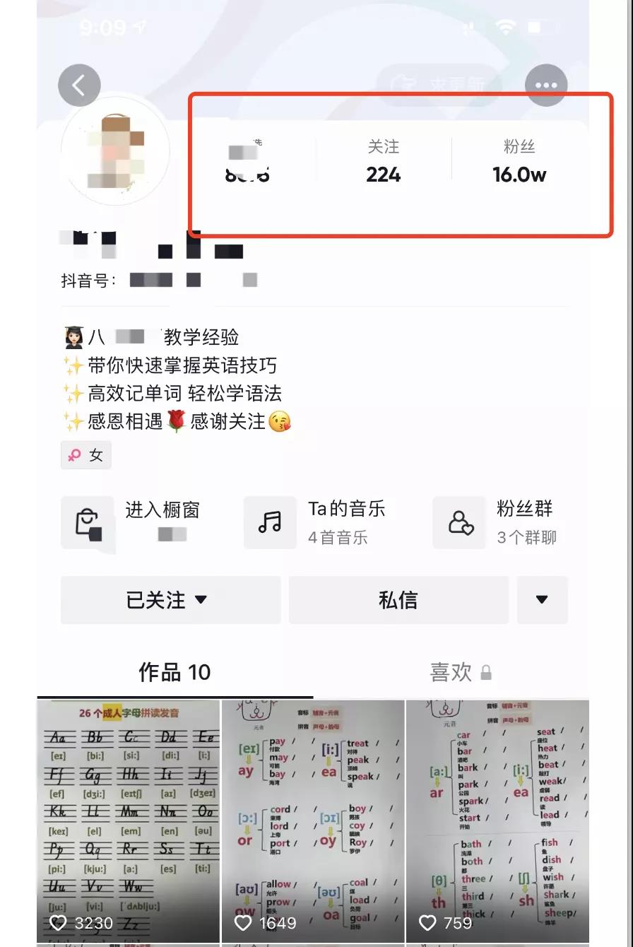 他說這個(gè)賬號(hào)的視頻也比較簡(jiǎn)單,視頻不需要真人出鏡,只需要把音標(biāo),26個(gè)字母打印出來,讀出來錄制就可以,他說目前這個(gè)賬號(hào),剛開始賣課程一個(gè)星期左右時(shí)間,效果還比較好,目前出單下來十多萬,馬上20萬了。