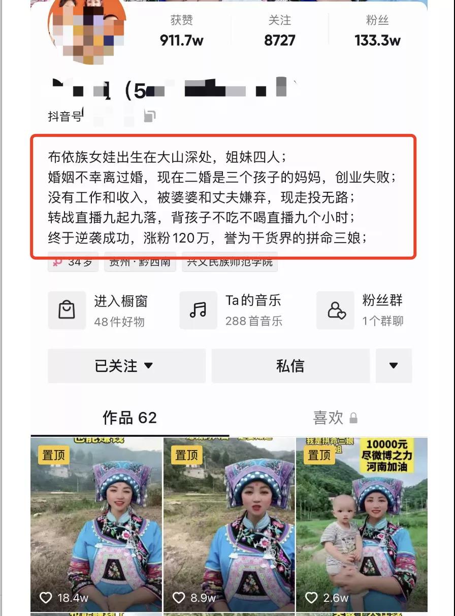 他說以前沒有一套可以復(fù)制的話術(shù),現(xiàn)在可以把這套話術(shù),批量復(fù)制給其他人,只要每天花兩個(gè)小時(shí)左右直播,就可以快速把粉絲搞上來,固定的直播話術(shù),你需要做的就是每天重復(fù)同樣的話術(shù),傻瓜式的干就可以,他說這個(gè)我想起當(dāng)時(shí)我研究我們貴州的一個(gè)說抖音干貨的案例,我連續(xù)一個(gè)星期進(jìn)去,都是重復(fù)同一個(gè)內(nèi)容重復(fù)直播,我關(guān)注時(shí)候才十多萬粉絲,目前也一百多萬。