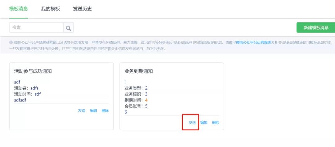 解決服務號的互動跟突破群發次數問題,就不得不提起“模板消息”功能了。
